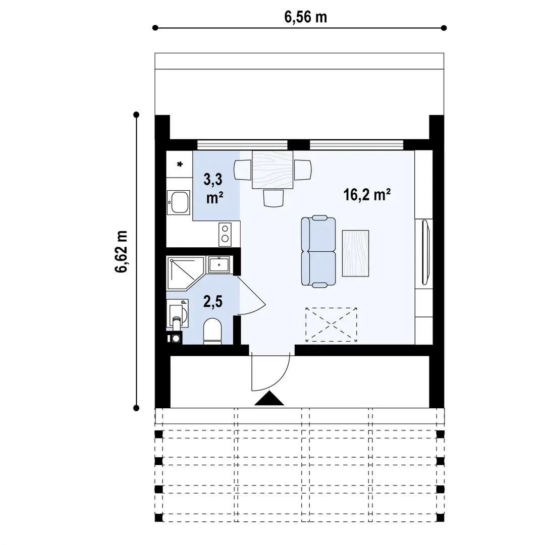 FrameDEV Z448 — nowoczesna stodoła z antresolą i przeszkleniami ogrodowymi Kompaktowy dom, który mieści się na małych działkach, a dzięki wysokiemu sufitowi nad salonem daje poczucie przestrzeni i światła. Idealny dla 2–4 osób oraz pod najem krótkoterminowy. Układ i możliwości Parter: otwarta strefa dzienna z kuchnią, łazienka, wyjście na taras przez ścianę szkła. Antresola/poddasze: 2 sypialnie lub sypialnia + otwarta strefa (home office/relaks). Efekt „wow”: pełne doświetlenie, widok na naturę, brak „martwych” metrów. Dlaczego pod wynajem Mały ślad zabudowy — postawisz nawet kilka modułów na jednej działce. Atrakcyjny design wyróżnia ogłoszenie i podnosi oceny. Zwarta, energooszczędna bryła = niższe koszty operacyjne.