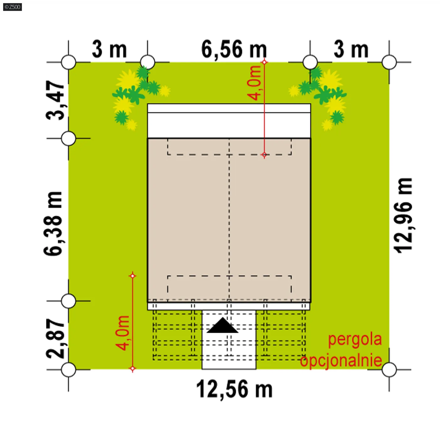 Minimalne wymiary działki szerokość 12,66 m długość 13,19 m Wymiary elewacji frontowej 6,66 m
