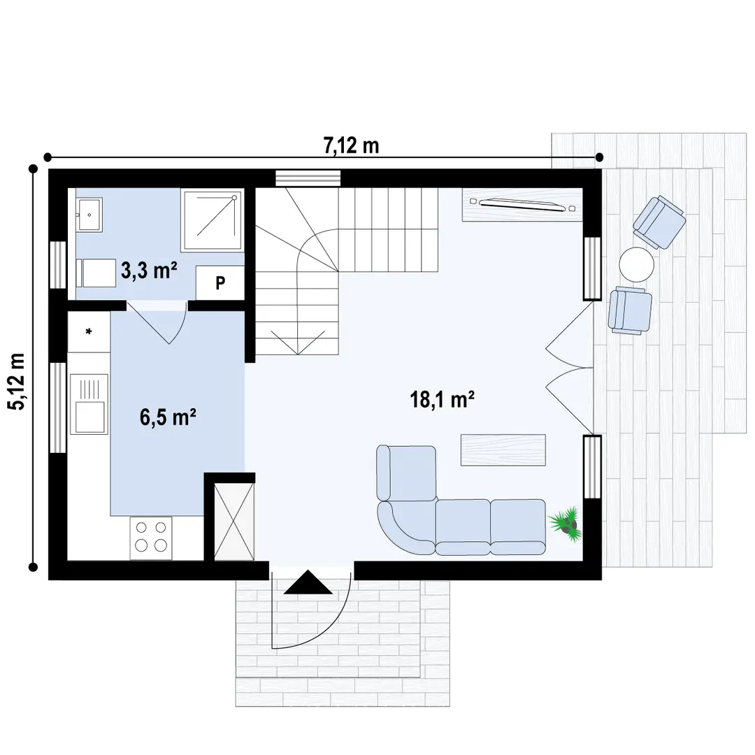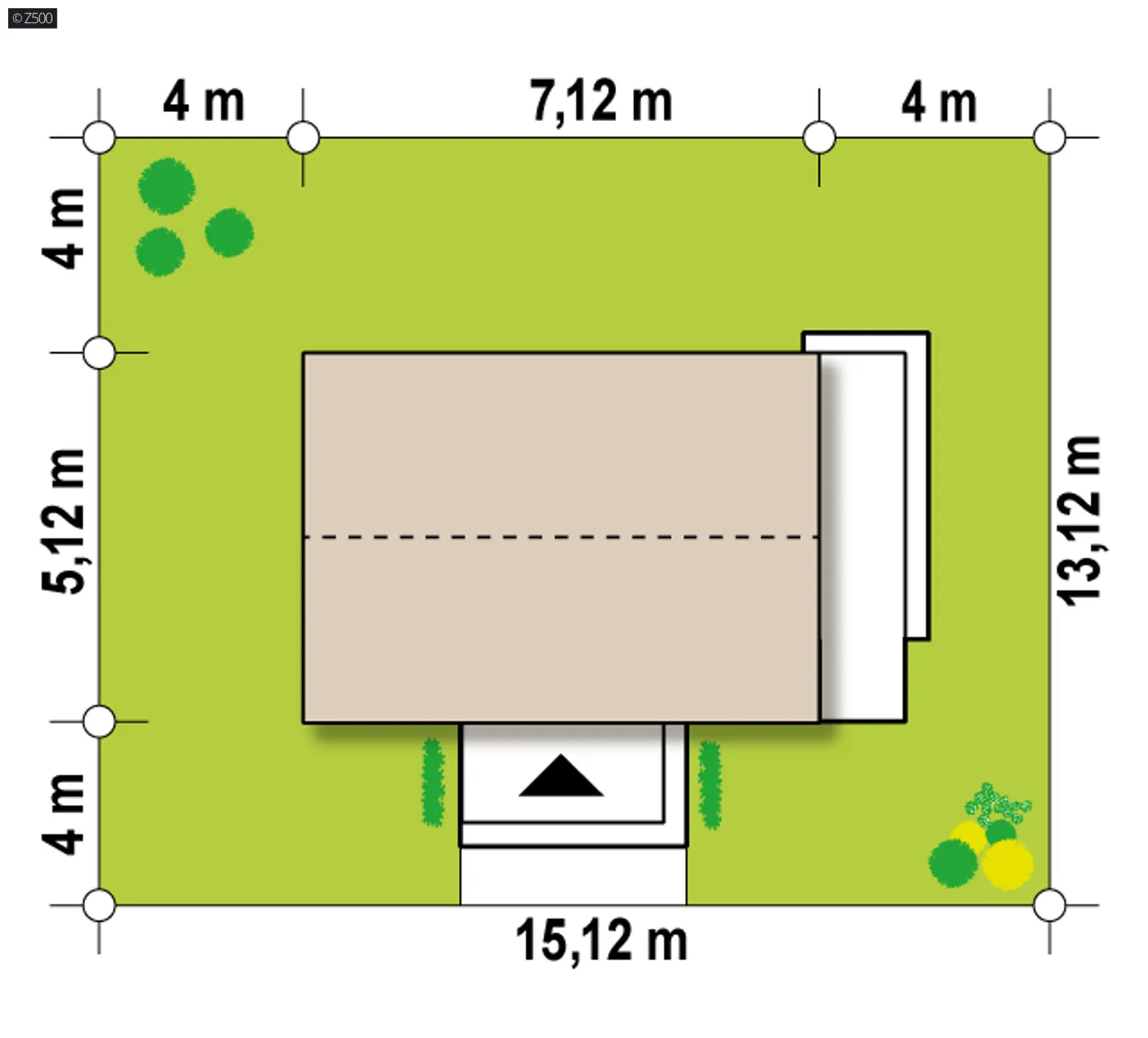 Minimalne wymiary działki szerokość 15,12 m długość 13,12 m Wymiary elewacji frontowej 7,12 m